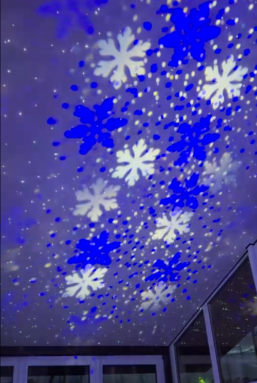 Create a cozy winter and holiday atmosphere with stunning snowflake light projections.